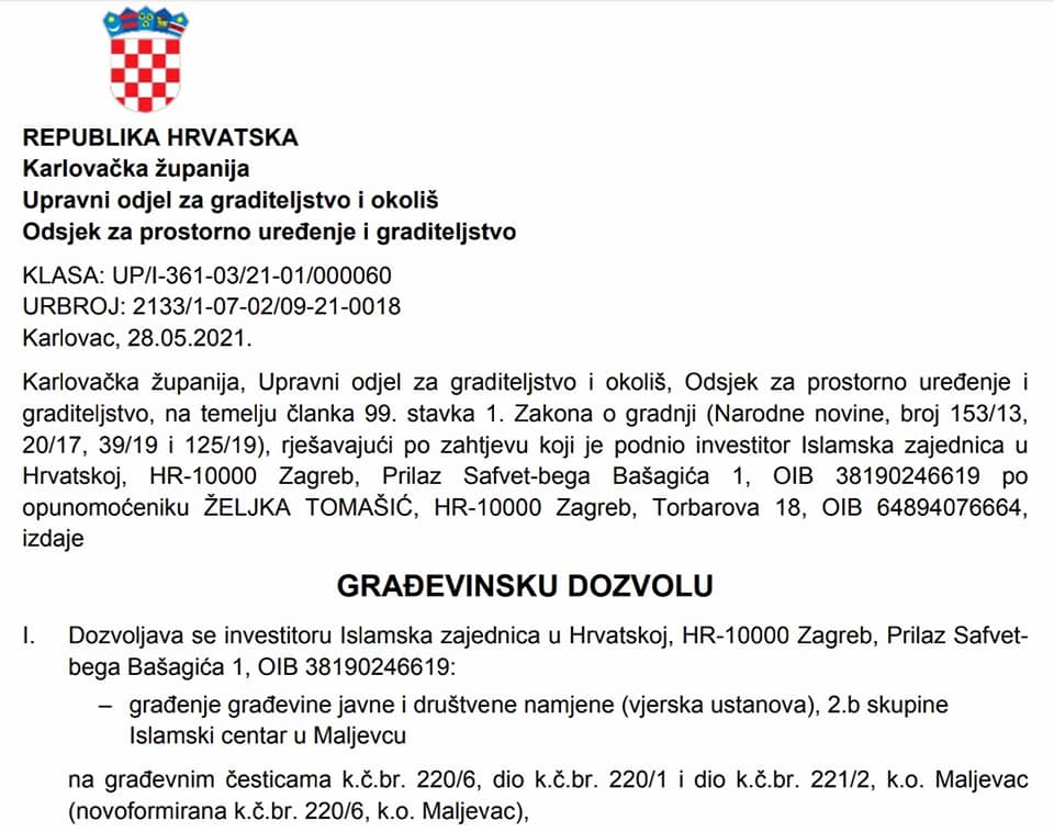 Danas smo dobili Građevinsku dozvolu za izgradnju Islamskog centra u Maljevcu. Elhamdulillah, hvala Bogu na svakoj blagodati!