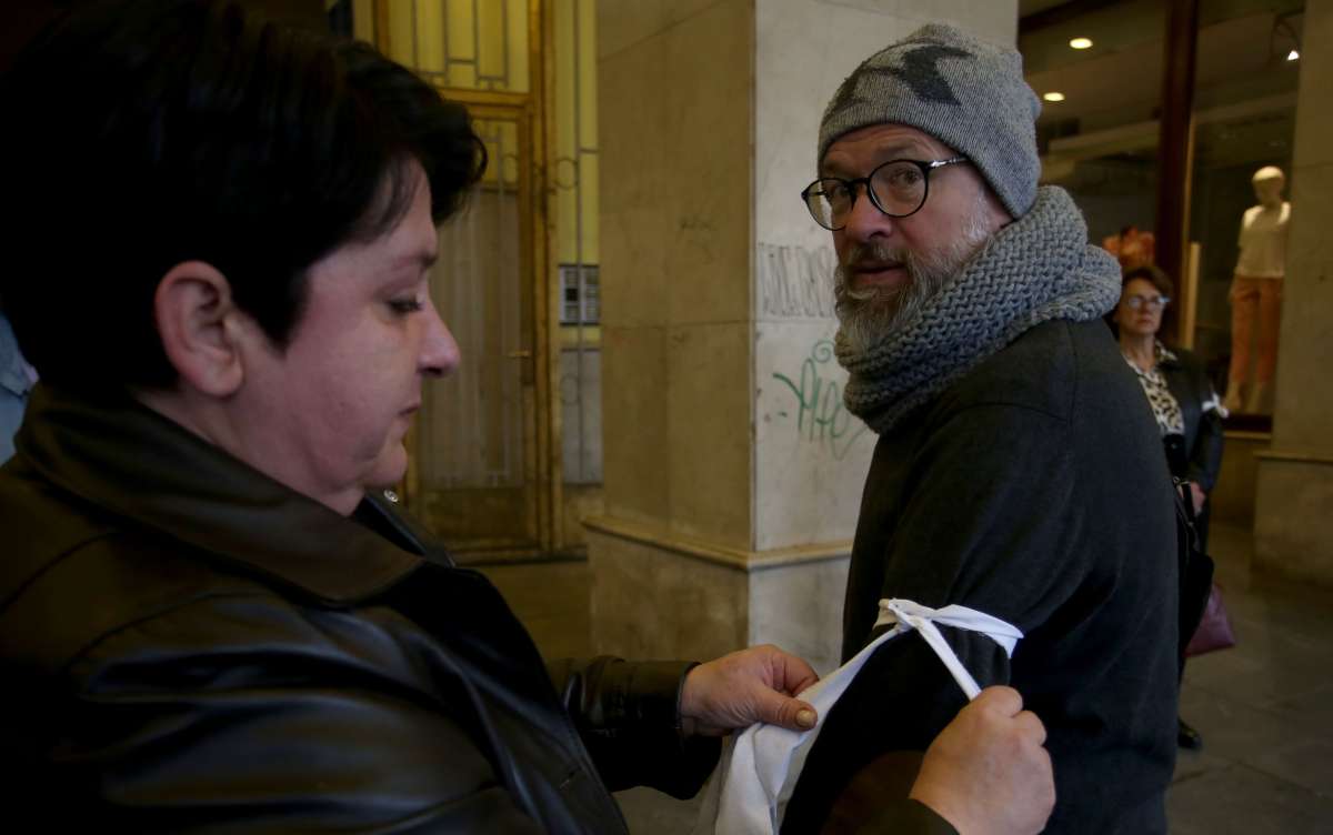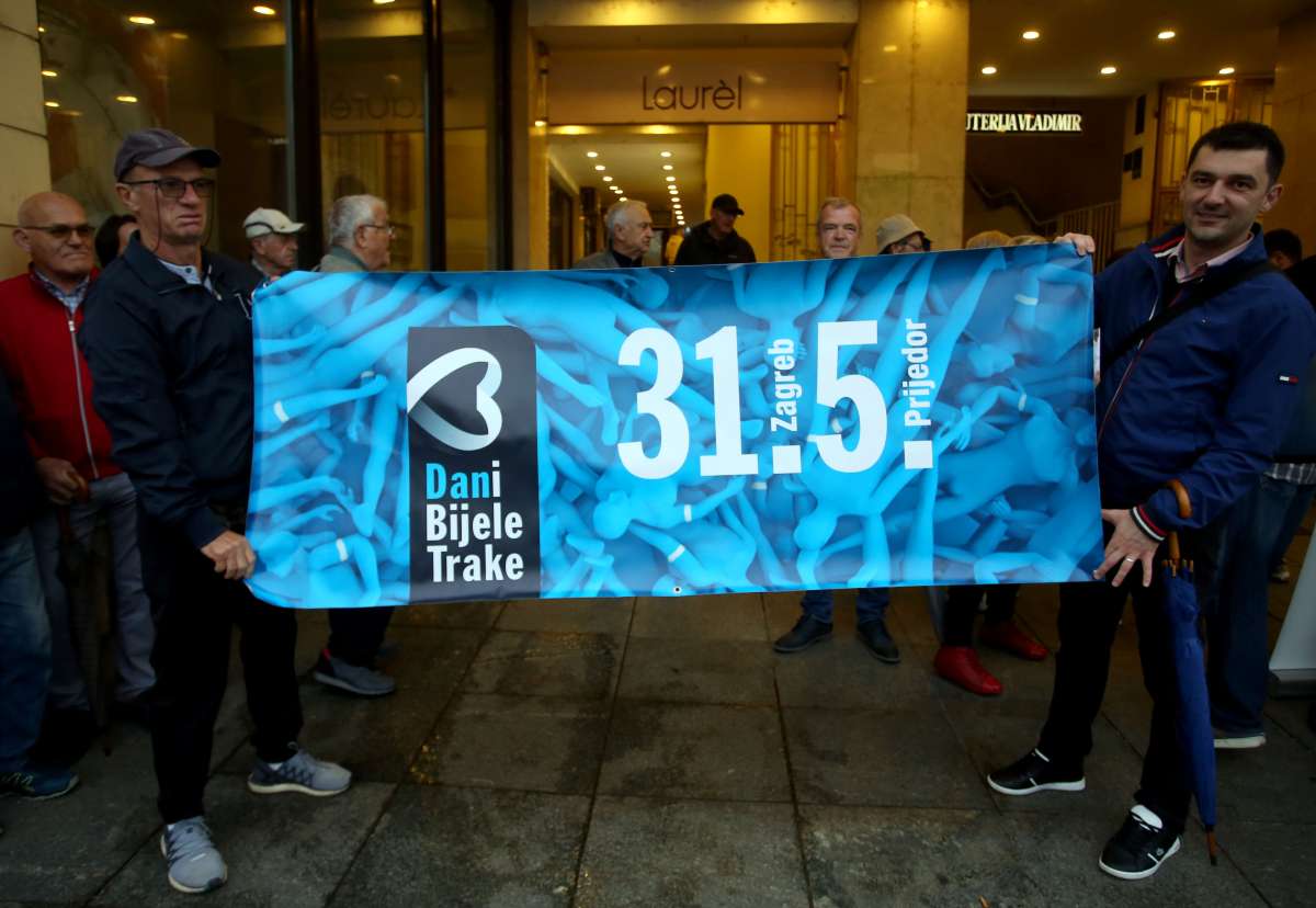 Organizatori su sudionicima i prolaznicima na središnjem zagrebačkom trgu dijelili informativne letke i vezivali bijele trake oko ruke u sjećanje na stradanja Hrvata i Bošnjaka na tom području.