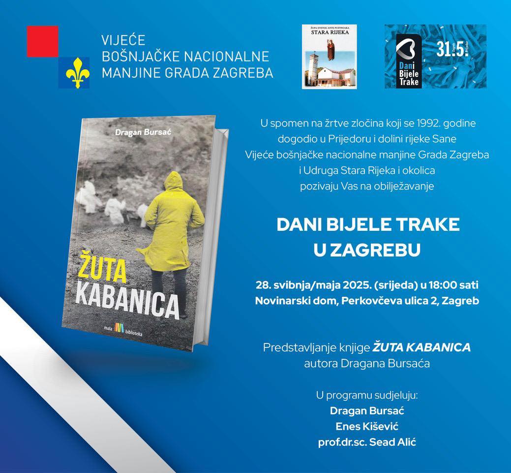 U srijedu, 28. maja 2025. godine s početkom u 18:00 sati, u Novinarskom domu (Perkovićeva ulica 2), bit će upriličeno predstavljanje knjige „Žuta kabanica“ autora Dragana Bursaća, bosanskohercegovačkog novinara i kolumnista. Uz autora, u programu učestvuju i književnik Enes Kišević te prof. dr. sc. Sead Alić.