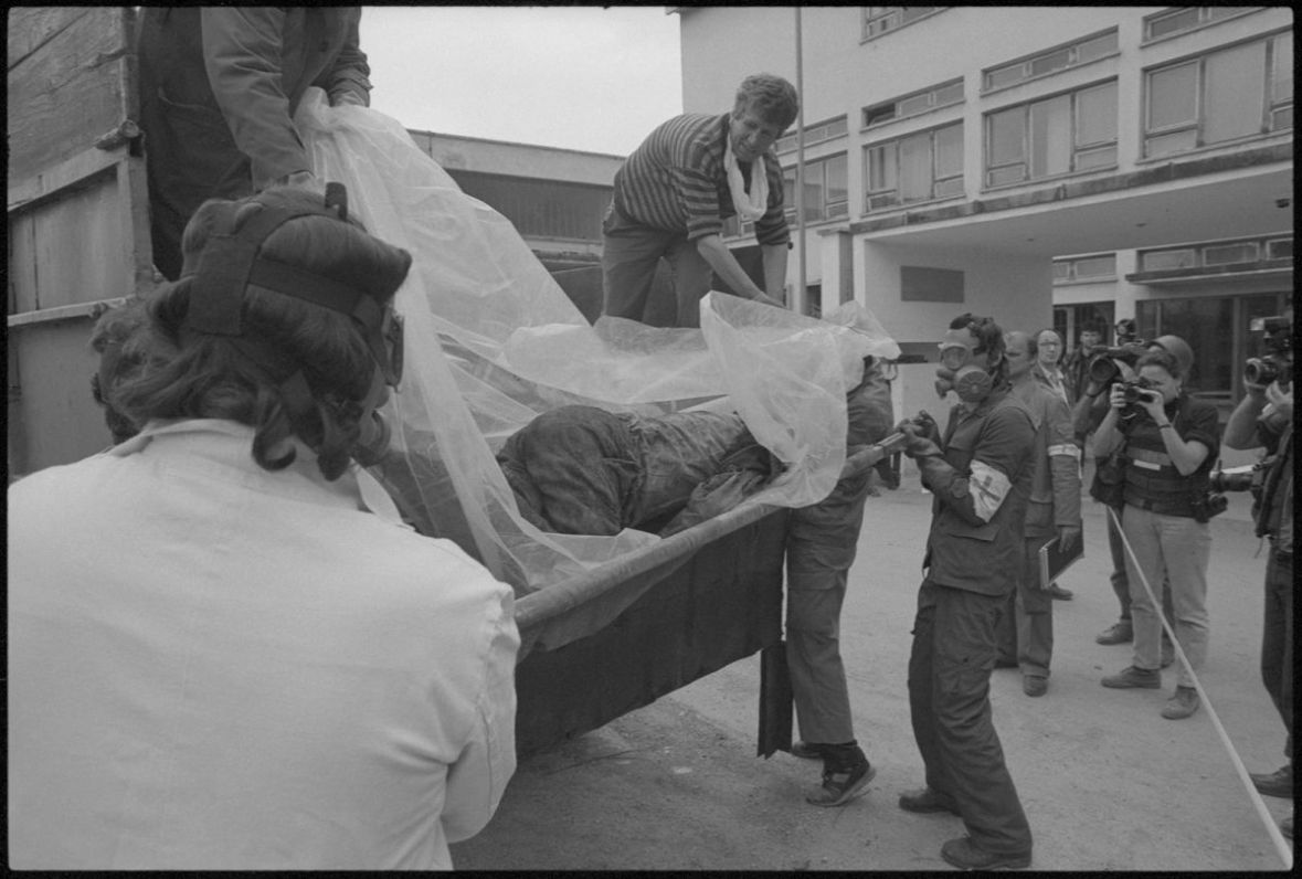 Prvih pet dana u logoru”, kaže Ahmić, „mene nisu dirali. Šesti dan došao je jedan bojovnik, podizao sve redom i kazao mi: ‘Hajde ti, brada!’ ‘Ne mogu’, rekoh, ‘ranjen sam.’ Kaže: ‘Diži se!’ Sreća da je tu bio zapovjednik logora, Anto. Rekao mu je da me ne dira, da sam ranjen. Sutradan je došla jedna djevojka iz MKCK, popisala nas i rekla da smo sad bezbjedni, da UNPROFOR zna za nas, da će doći ljekar da nas pregleda. Ljekar je došao prekosutra sa TV kamerama, čini mi se CBS, koji su nas snimili. Mene je prvog pregledao. Rekao sam mu da sam ranjen, da imam problema sa prehladom bubrega. On je sve to zapisao. Nije prošlo dvadesetak minuta, zove mene i još njih 5-6. Kaže, vi ste bolesni i ići ćete za Zenicu. Uveli su nas u svoj džip i odvezli u bazu UNPROFOR-a u Novi Travnik. Tu su nam dali da jedemo i prvim konvojem prebacili u Zenicu. Po dolasku u Zenicu“, kaže Ahmić, „saznao sam da mi majka i sestre nisu izašle iz Ahmića. Na jednoj videokaseti vidio sam kako zapovjednik snaga UN-a, Bob Stjuart (Bob Stewart), pokazuje jednu kuću u Ahmićima i izjavljuje da je u njoj stradala žena sa kćerkama. Pokazuje i dva muška leša i zaključuje da su to, vjerovatno, otac i sin koji su pokušali da ih zaštite, ali su ih ustaše pobili. Jedan kaže da je manijak uletio u podrum, gdje je bila žena sa kćerkama, bacio bombu, ubio ih, masakrirao i zapalio. Tako, od kompletne moje familije, samo sam ja ostao živ. U Ahmićima je ubijeno 86 mještana. Kada se dodaju ubijeni u Nadiocima, onda je to 103. Tu je bilo još izbjeglica iz okoline Foče, istočne Bosne, sela Karaule, tako da je ukupno, po mom mišljenju, ubijeno oko 120 ljudi.“ (Izjave svih preživjelih svjedoka iz Ahmića nalaze se u Arhivu Instituta za istraživanje zločina protiv čovječnosti i međunarodnog prava Univerziteta u Sarajevu.)