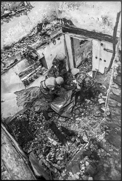 Prepoznao sam četvoricu ljudi: Šafradin Nikicu, zvanog Ćićo, bio je ćelav i imao brkove. Radio je zajedno sa mnom u preduzeću ‘Mašinogradnja’. Bio je svirač. Sada je bio komandir čete ili voda. Vodio je vojsku i raspoređivao. Prepoznao sam, zatim, Iliju Livančića iz sela Mahale. Radio je u Zenici. Bio je krupan momak, sa crnim brkovima u obliku potkovice. Bio je oženjen iz Nadioka. I on je, kao i Nikica, bio u vojnoj policiji HVO uoči rata. Vjerovatno je taj vod vojne policije i počinio zločin u Žumama, gdje je puno Bošnjaka ubijeno. Treći, kojeg sam prepoznao, bio je, takođe, komšija iz sela Donja Rovna, Šantić Dragan, a četvrti je bio Totić Blaž, šofer u mom preduzeću “Mašinogradnja”. I on je krupan, sa brkovima. Prepoznao sam, takođe, ljude iz naselja: Rijeka, Kruščica, Vitez, Križančevo Selo. Uglavnom, napad na Žume vodili su Vitežani, specijalna jedinica ‘Vitezovi’ i jedinica vojne policije. Neki su bili u crnim, pravim ustaškim uniformama, a neki u civilnim odijelima, pa i trenerkama. Valjda su ih digli to jutro i samo im puške dali. Primijetio sam da mi kuća gori“, nastavlja Ahmić.