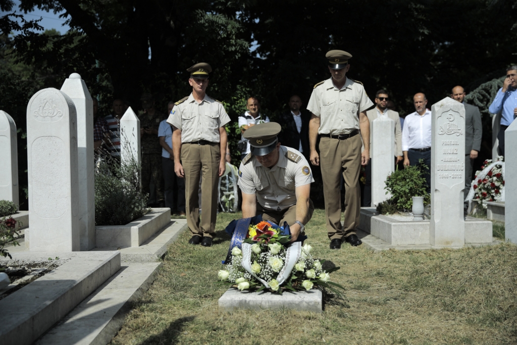 Cvijeće na mezarje u haremu Alipašine džamije položili su članovi Udruženja “1. Slavna – 111. Viteška brigada Sarajevo”, predstavnici boračkih kantonalnih i općinskih udruženja, veterani brigade, porodice šehida i poginulih boraca, te predstavnici izvršne i zakonodavne vlasti.