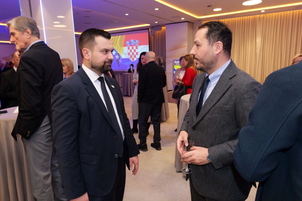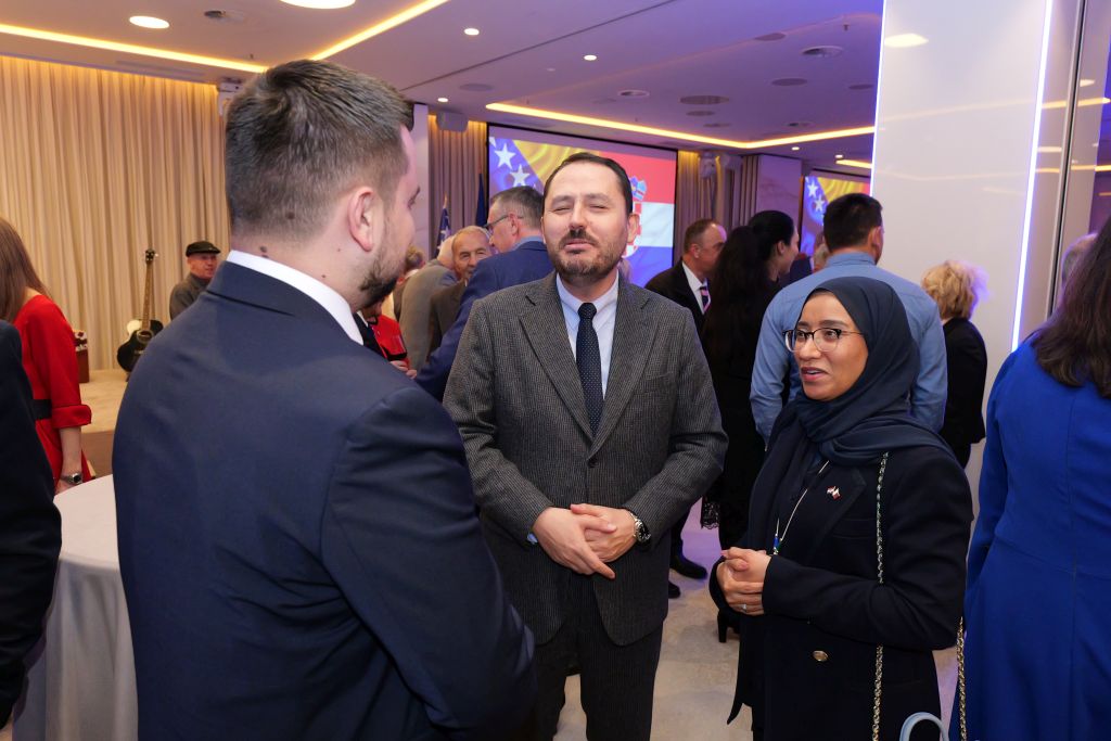 Istaknula je i ključnu ulogu Hrvatske u podršci euroatlantskim integracijama BiH. Na kraju govora zahvalila je brojnim donatorima i partnerima koji su omogućili organizaciju prijema, brojne privrednike iz Hrvatske i BiH te članovi bh. zajednice u Zagrebu.