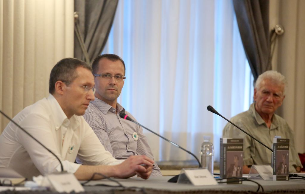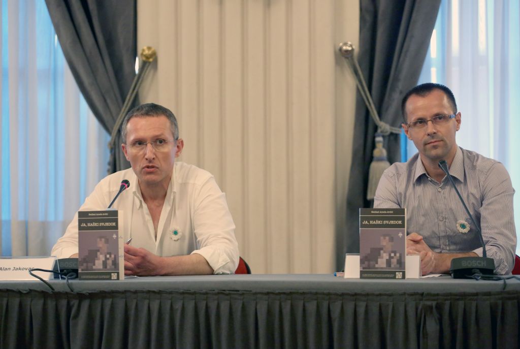 - Zagreb, Hrvatska – 8. srpnja 2021: Dokumentarist i istraživač Alan Jakovac (L) i autor knjige „Ja, haški svjedok” Nedžad Avdić (D) Vijeće bošnjačke nacionalne manjine Grada Zagreba (VBNMGZ) i Bošnjačka nacionalna zajednica za Grad Zagreb i Zagrebačku županiju (BNZGZZŽ)u spomen na genocid nad Bošnjacima Srebrenice i Podrinja organizirali su promociju knjige „Ja, haški svjedok“ autora Nedžada Avdića i Amele Avdić Unkić u Novinarskom domu u Zagrebu ( Stipe Majic – Anadolu Agency )