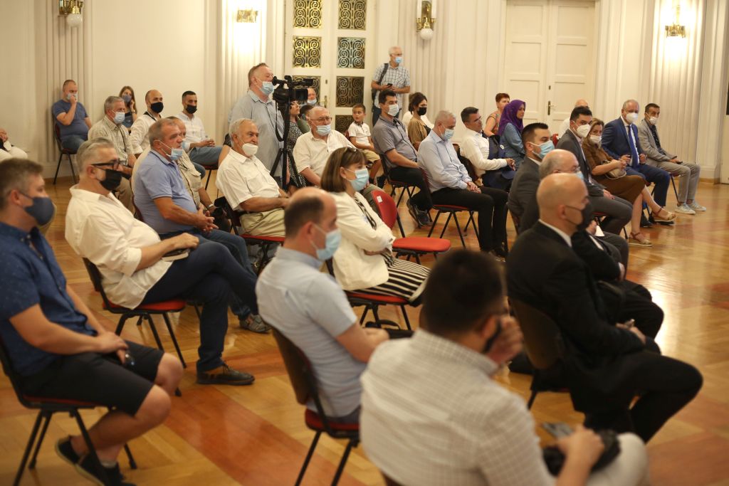 - Zagreb, Hrvatska – 8. srpnja 2021: Vijeće bošnjačke nacionalne manjine Grada Zagreba (VBNMGZ) i Bošnjačka nacionalna zajednica za Grad Zagreb i Zagrebačku županiju (BNZGZZŽ)u spomen na genocid nad Bošnjacima Srebrenice i Podrinja organizirali su promociju knjige „Ja, haški svjedok“ autora Nedžada Avdića i Amele Avdić Unkić u Novinarskom domu u Zagrebu ( Stipe Majic – Anadolu Agency )