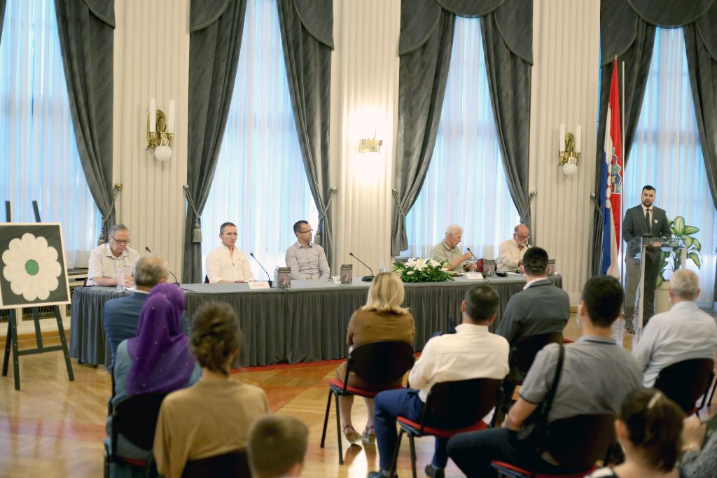 - Zagreb, Hrvatska – 8. srpnja 2021: predsjednik VBNMGZ-a Armin Hodžić Vijeće bošnjačke nacionalne manjine Grada Zagreba (VBNMGZ) i Bošnjačka nacionalna zajednica za Grad Zagreb i Zagrebačku županiju (BNZGZZŽ)u spomen na genocid nad Bošnjacima Srebrenice i Podrinja organizirali su promociju knjige „Ja, haški svjedok“ autora Nedžada Avdića i Amele Avdić Unkić u Novinarskom domu u Zagrebu ( Stipe Majic – Anadolu Agency )